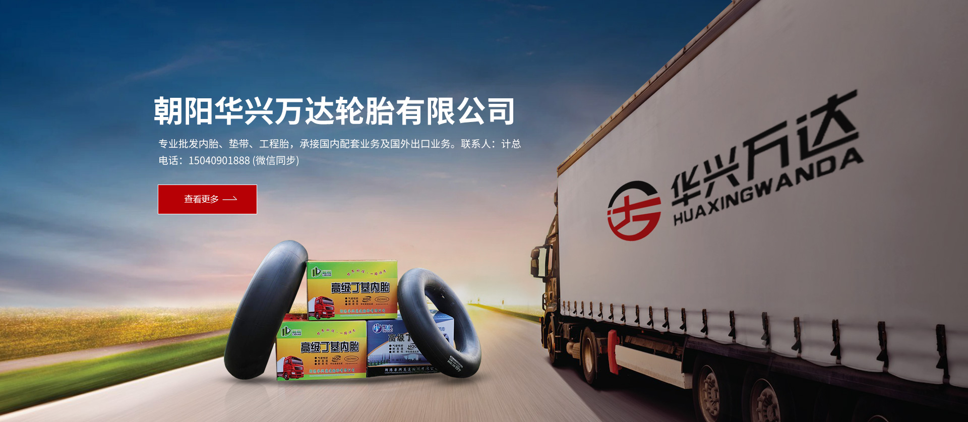 朝陽華興萬達輪胎有限公司是一家集產、供、銷、研于一體的大型民營股份企業集團。主要生產丁基橡膠汽車內胎、墊帶、工程內胎等系列產品。